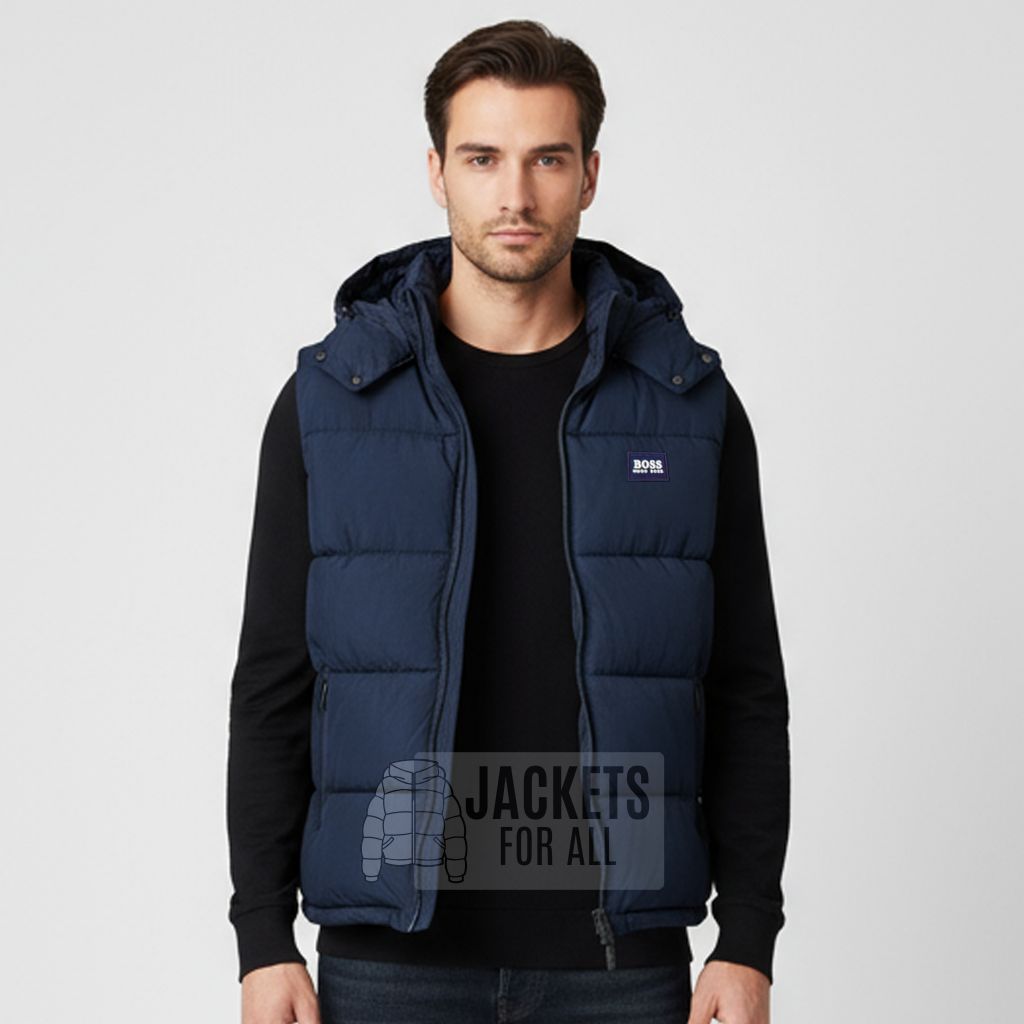Αμάνικο ανδρικό γιλέκο σε σκούρο μπλε, με κουκούλα και φερμουάρ σε όλο το μήκος. Ζεστό, ελαφρύ και άνετο, προσφέρει ευελιξία στις κινήσεις και είναι ιδανικό για layering πάνω από φούτερ ή μπλούζες. Το διακριτικό λογότυπο στο στήθος δίνει premium αισθητική, ενώ το μοντέρνο design το κάνει ιδανικό για κάθε περίσταση.